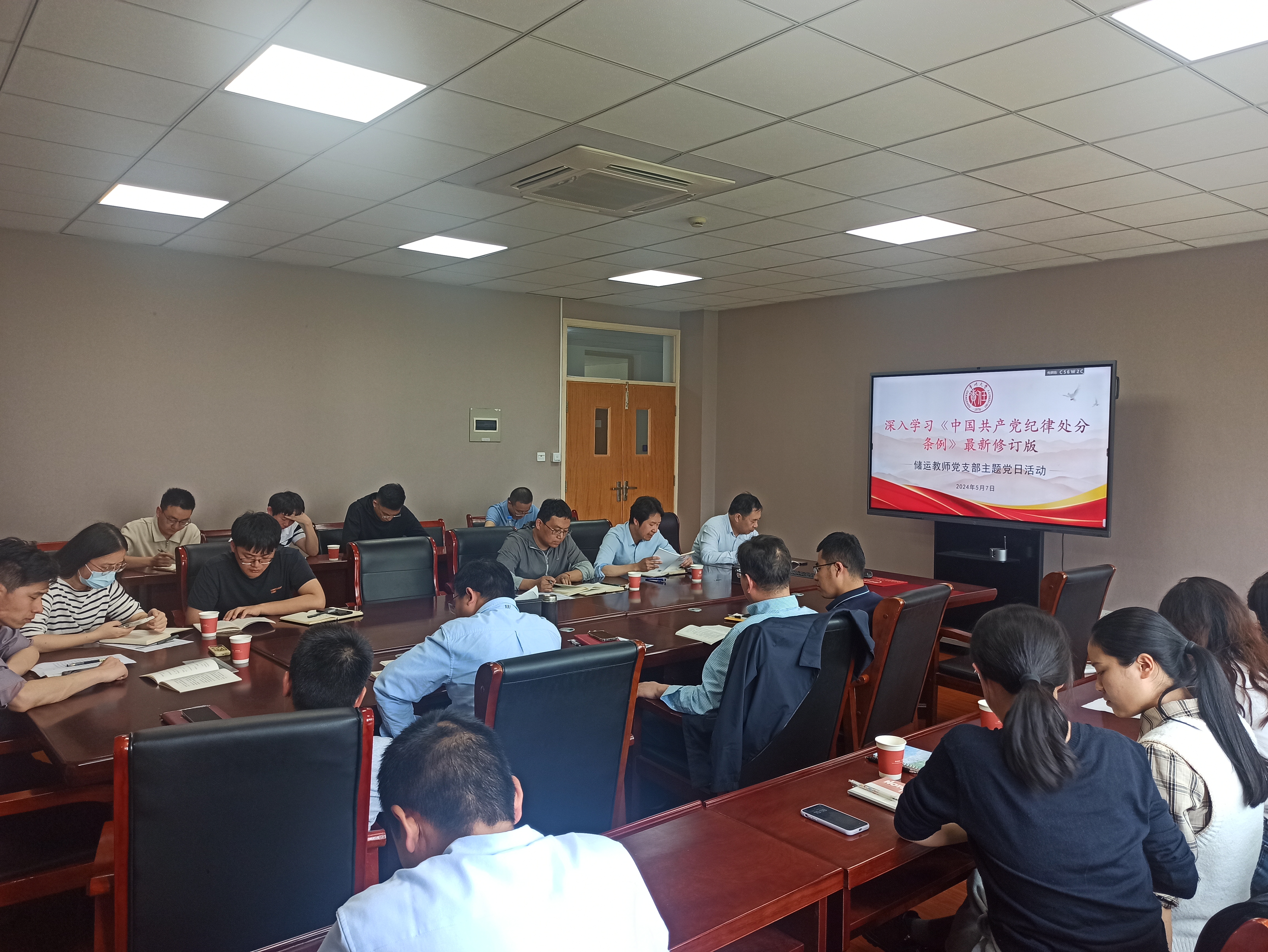 为高质量开展党纪学习教育,5月7日,储运教师党支部在科教城校区(东)乐行楼652会议室组织教师深入学习新修订的《中国共产党纪律处分条例》(以下简称《条例》)。支部全体党员参加会议,支部书记吕晓方主持会议。