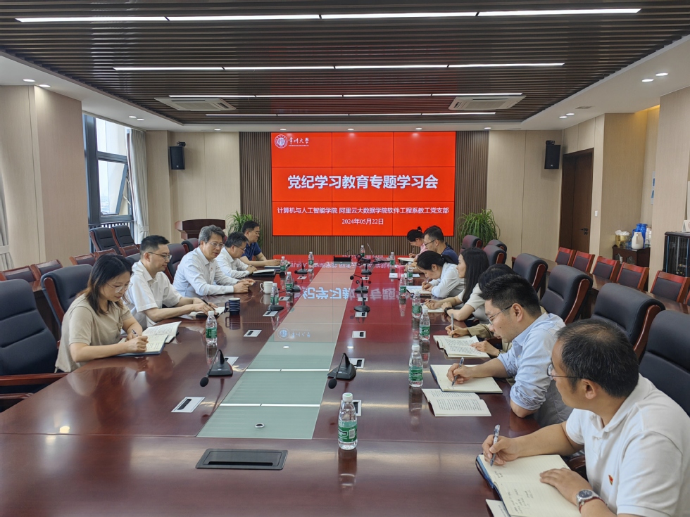 5月22日下午,计算机与人工智能学院 阿里云大数据学院软件工程系教工党支部在西太湖校区图文信息楼818会议室召开党纪学习教育专题学习会,集体学习《中国共产党纪律处分条例》(以下简称《条例》)。支部全体成员参加,校党委书记徐守坤以普通党员身份参会。软工系党支部书记顾玉宛主持会议。