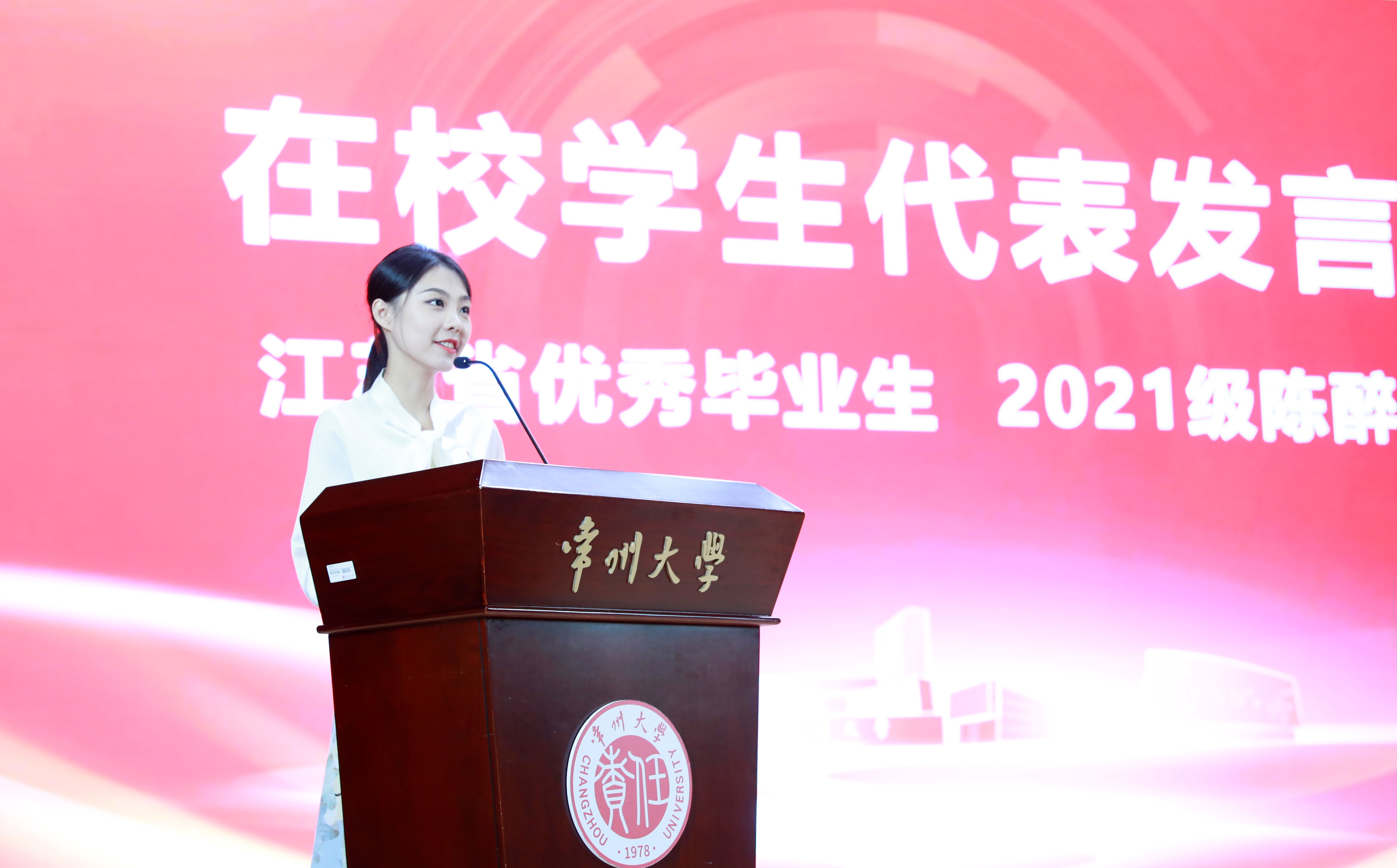 在校生代表、江苏省优秀毕业生、2021级研究生陈醉回顾了在校期间的学习与生活,她坦言是学院恩师的悉心指导和谆谆教诲让其蜕变成熟,是beat365官方网站这方热土赋予其向上生长的力量。她向母校、学院、师长表达了由衷的感谢,向全体毕业生致以衷心的祝福。