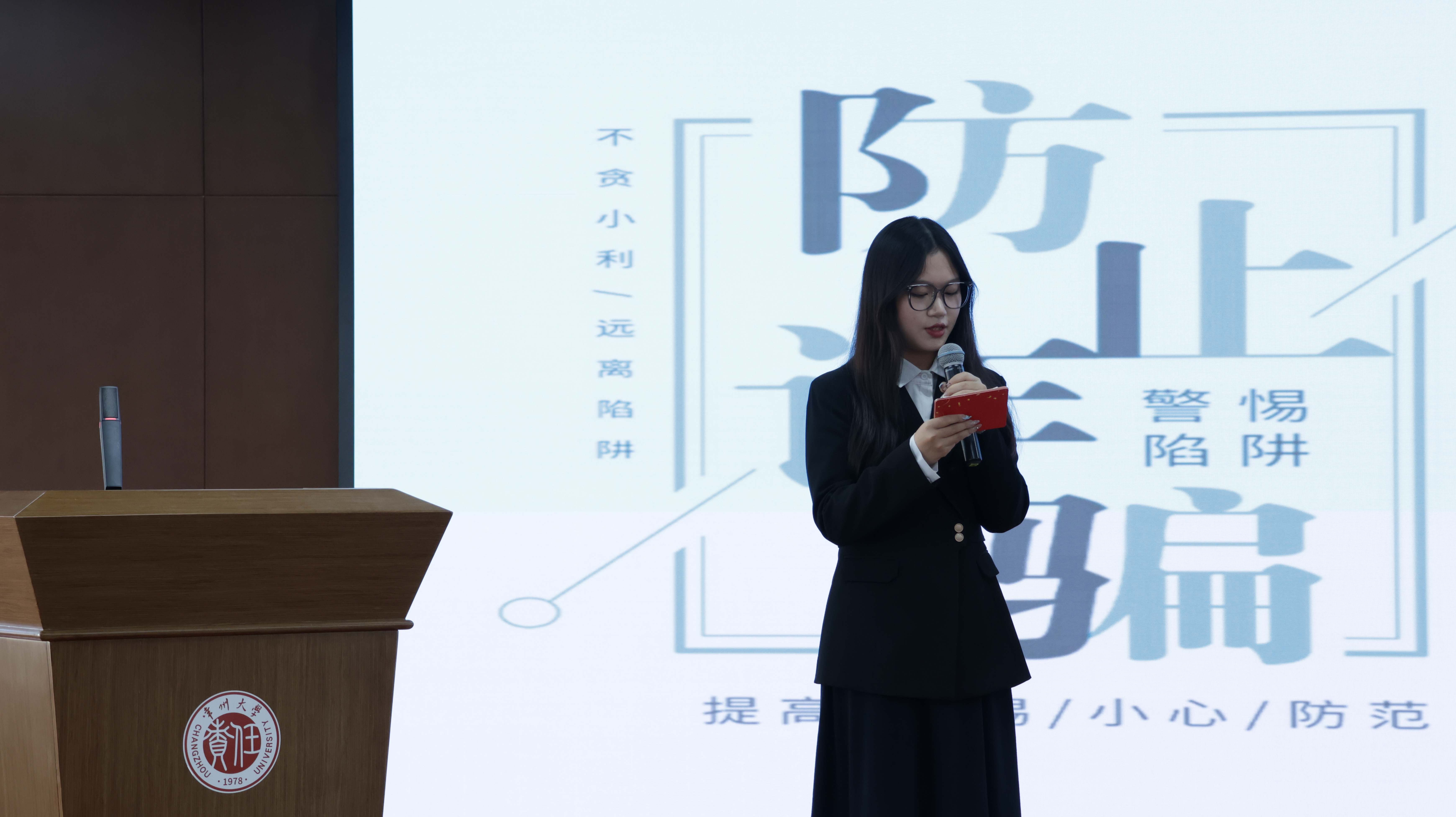 来自beat365官方网站史良法学院的张佳可同学作题为《以青春之我 共筑校园安全墙》的宣讲。