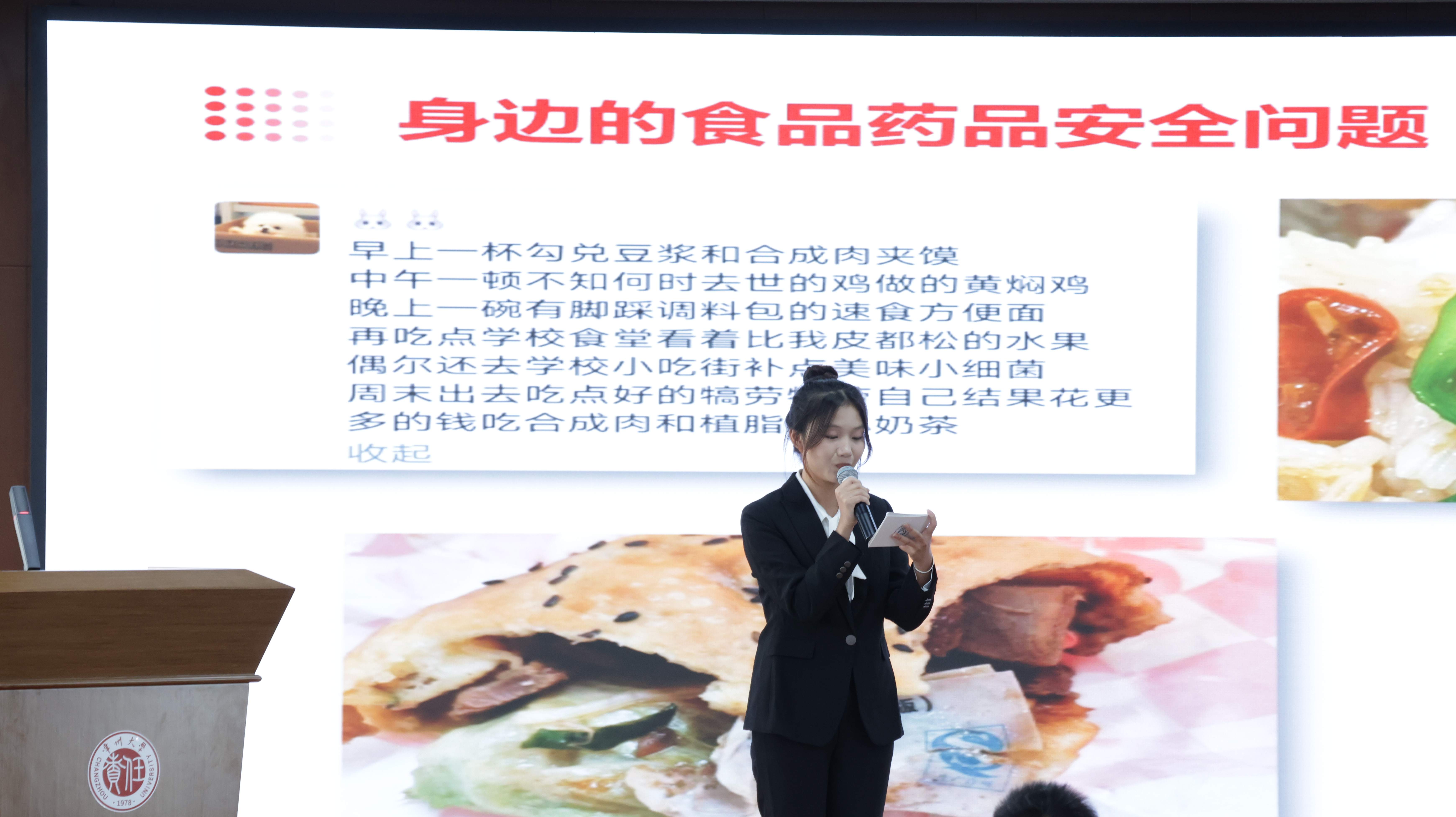 来自南京审计大学的韦祎同学作题为《筑牢权益“防火墙”,守护“舌尖”上“针尖”下的安全》的宣讲。