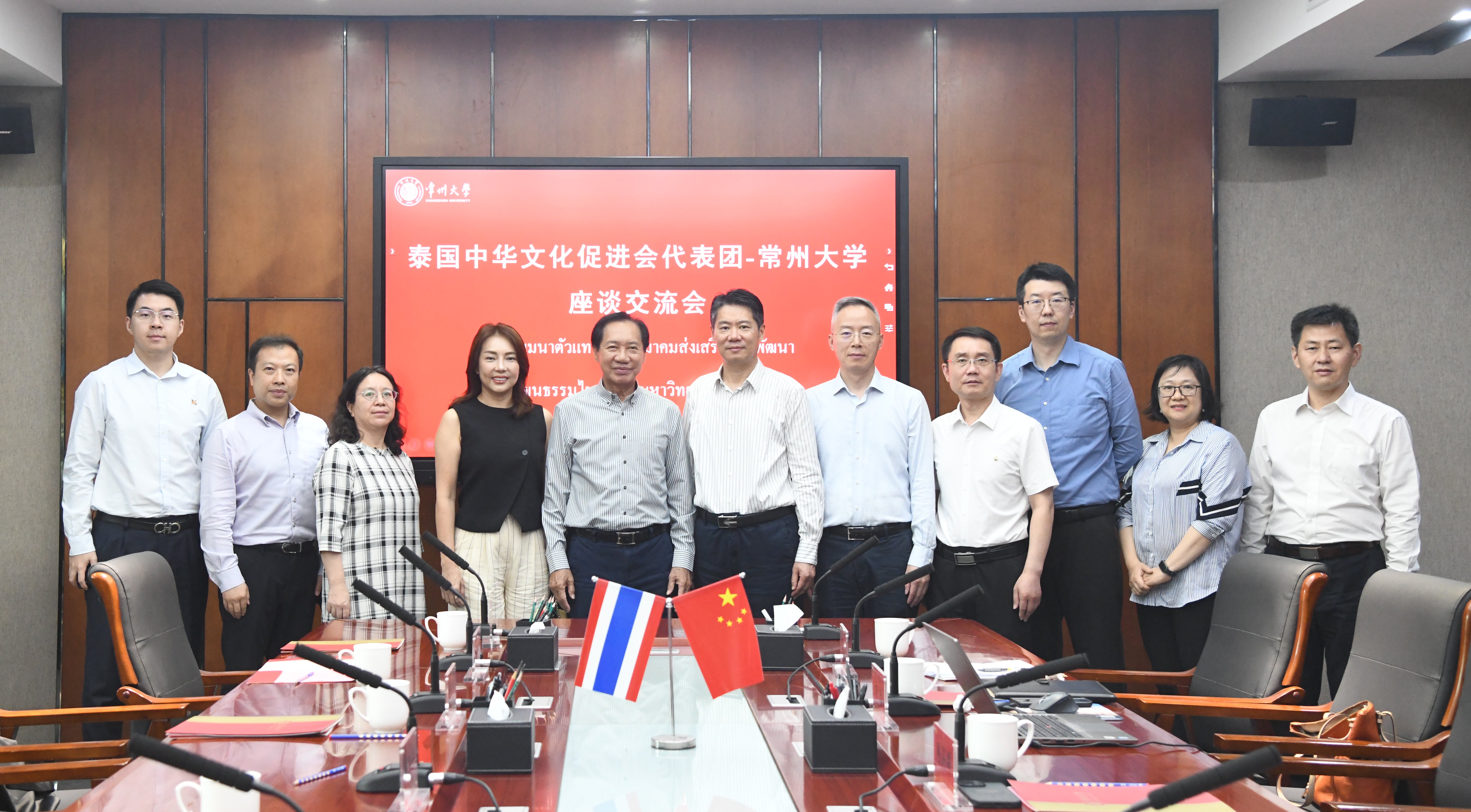 6月10日,泰国中华文化促进会与beat365官方网站座谈会在科教城校区文正楼召开。泰国中华文化促进会会长、前国会主席颇钦・蓬拉军一行,江苏省外事办出国管理处四级调研员房艳梅、常州市外事办副主任沈炼、友协处处长谢巍出席交流,beat365党委副书记、校长陈海群,国际交流处、跨文化研究院及泰国研究中心相关负责人参加会见。